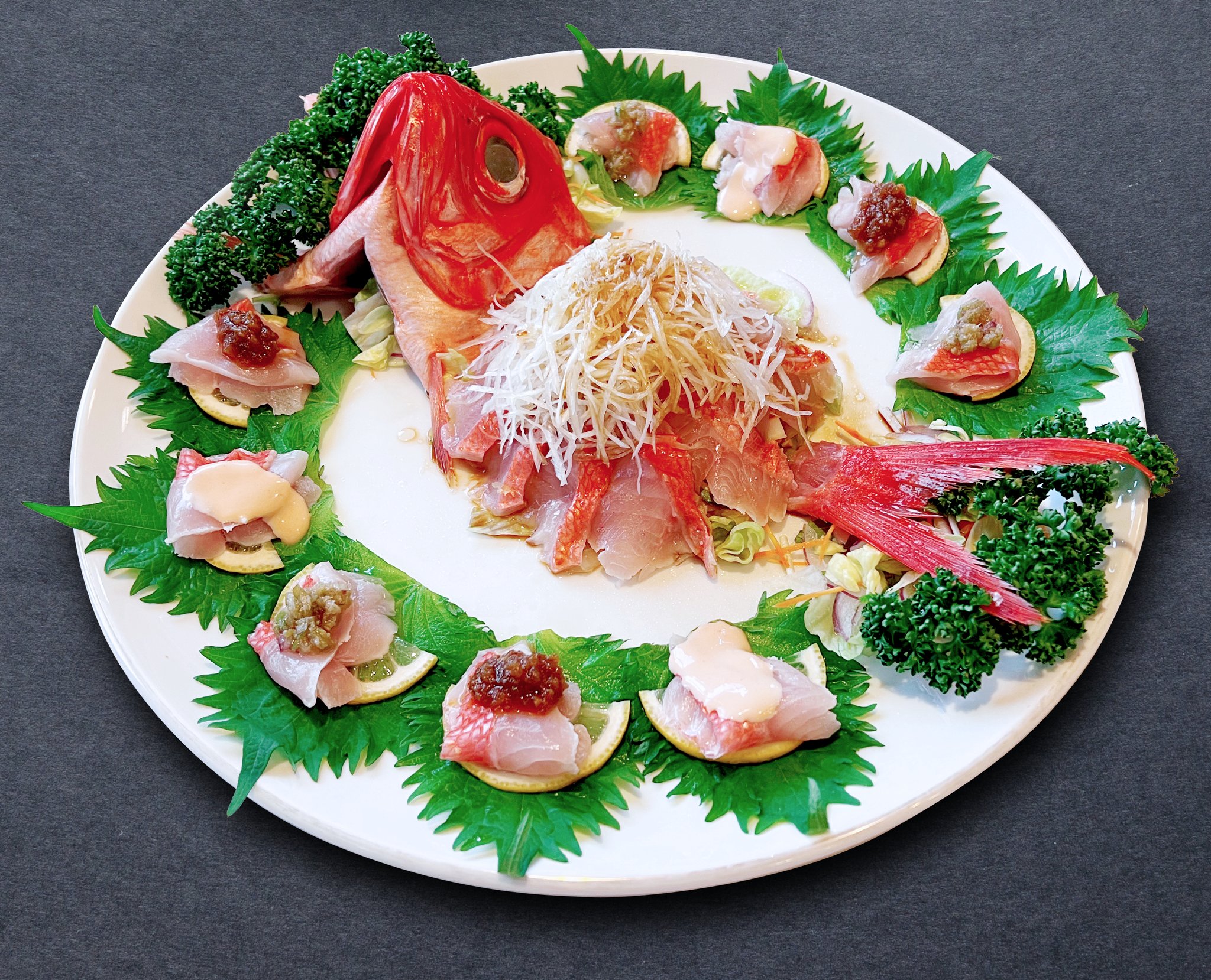 日本一の水揚げを誇るキンメダイを中華風刺身やキンメダイのしゃぶしゃぶ火鍋&天然塩鍋はいかがでしょう!ご予約にてお作りいたします!